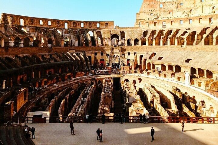 The Arena is the ground of the colosseums (partially, restored) and it was the stage where gladiators and wild animals fought. On the Arena, there is a balcony overlooking the undergrounds as well. The Arena floor is located just above the undergrounds, so you would have an above sight on them.